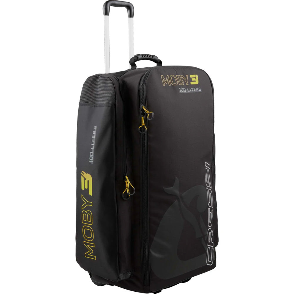 Cressi Moby 3 sağlam ve geniş tekerlekli bavul çanta, tanıdığınız ve sevdiğiniz sevilen Moby 5 çantanın yeni kardeşidir. Son teknoloji ürünü 300/400 denye malzemeden üretilen bu çanta, hafif ve çekici tasarımı ile olağanüstü dayanıklılıkla birleştiriyor. Geniş ana bölmesi üç taraftan açılarak kişisel eşyalarınıza kolay erişim sağlar. Paletler için özel olarak tasarlanmış iki büyük yan cep sayesinde eşyalarınızı saklayabileceğiniz geniş alana sahip olacaksınız. Rahat taşıma için Moby 3, gerektiğinde kolayca değiştirilebilen geniş çaplı tekerleklerle donatılmıştır. Arabanın üst ve alt kısımlarında güçlendirilmiş taşıma kolları bulunmaktadır. Önceki model Moby 5 gibi Moby 3 de dayanıklılığı garanti eden sağlam YKK fermuarlarla donatılmıştır. Moby 3 ile seyahat deneyiminizi geliştirin.